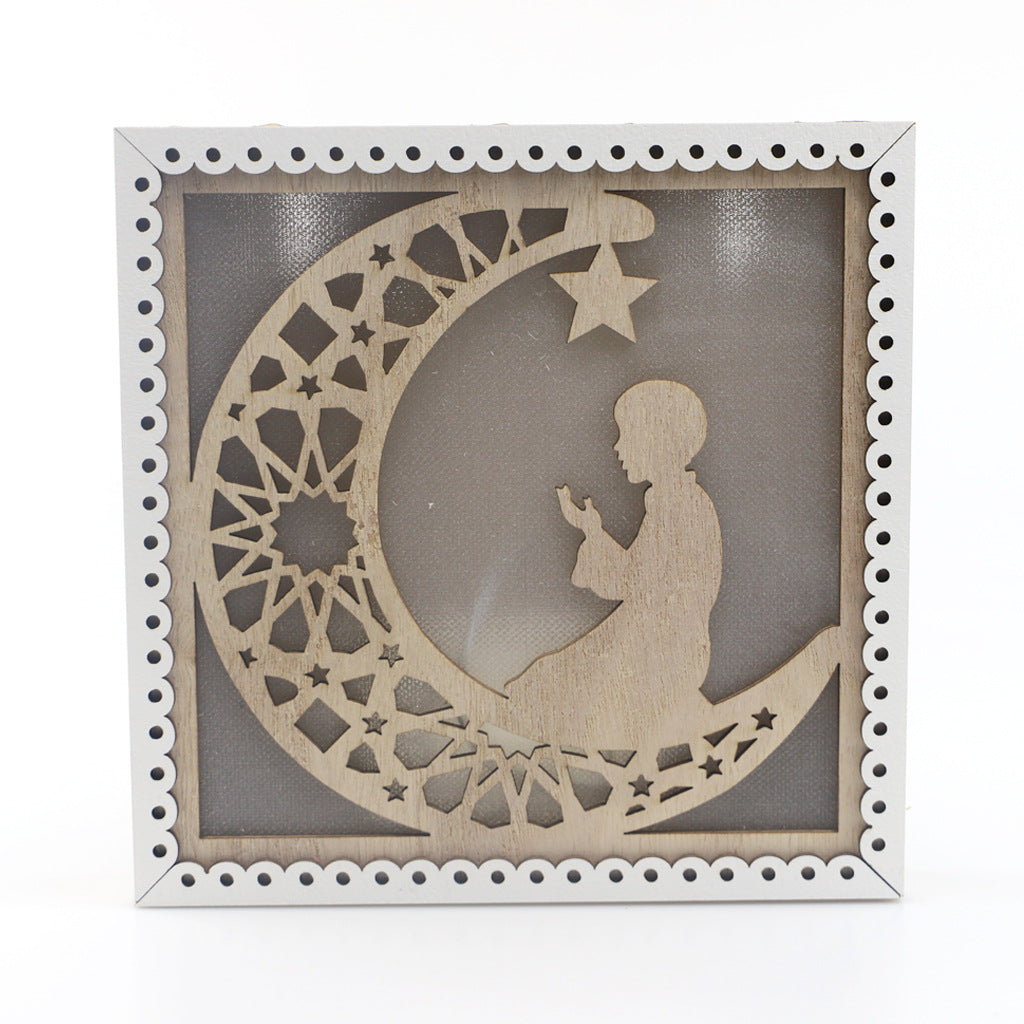 Wooden Eid Mubarak Ramadan Gulbang Square Decoration Crafts